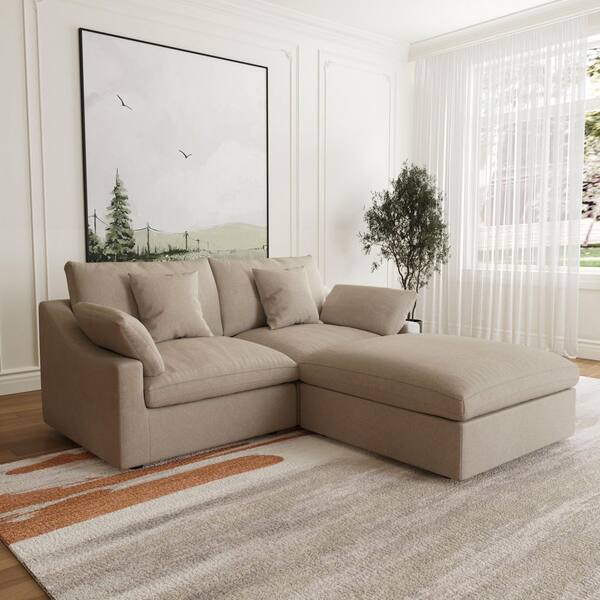 82.68 in. Slope Arm 3-Piece Linen Modular Free Combination Sectional Sofa with Ottoman and Covers in. Brown 2-Seater