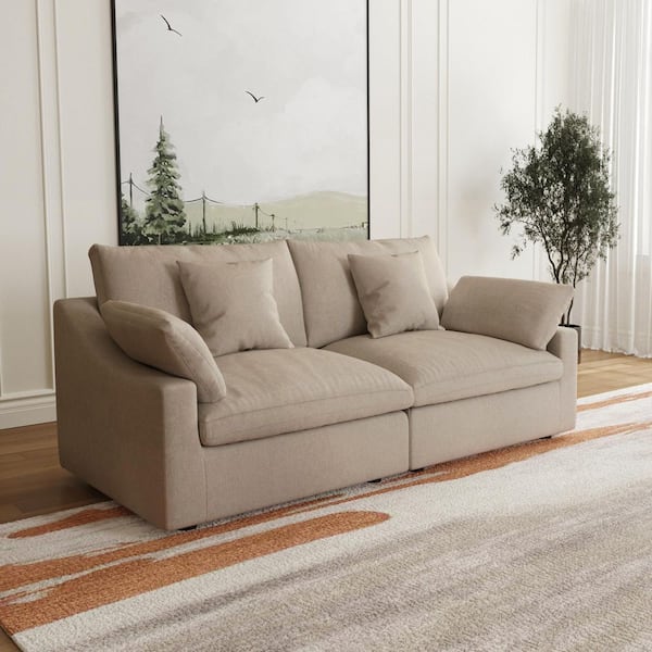 82.68 in. Square Arm 2-Piece Linen Modular Free Combination Sectional Sofa in Brown Loveseat with Removeble Covers