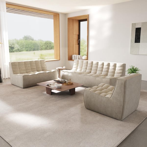82.68 in. W Armless Linen Polyester Modular Free Combination 3 Pieces Sofa in. Brown