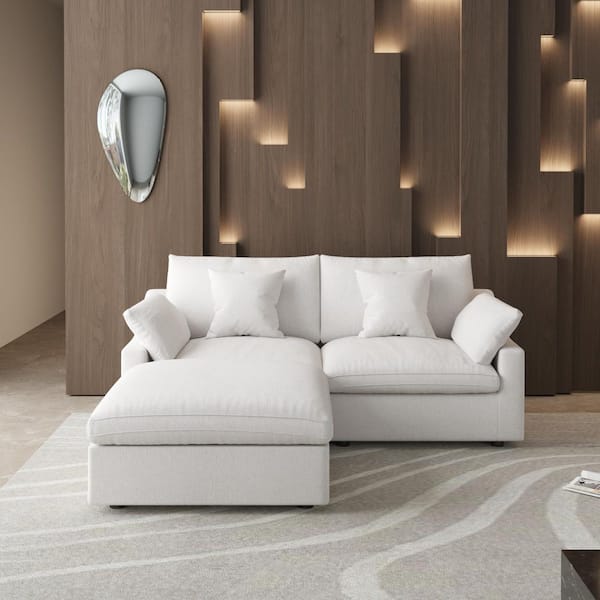 82 in. Square Arm 3-piece Linen Modular Sectional Sofa in. Beige with Ottoman, Living Room Couch, Customizable Design