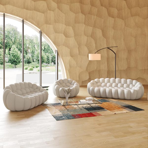 98.43 in. W Flared Arm 3D-Knitted Polyester 3-Piece Curved Modular Sectional Sofa in Beige