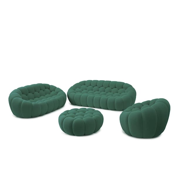 98.43 in. W Flared Arm 3D-Knitted Polyester 4-Piece Curved Modular Sectional Sofa in Green with Ottoman