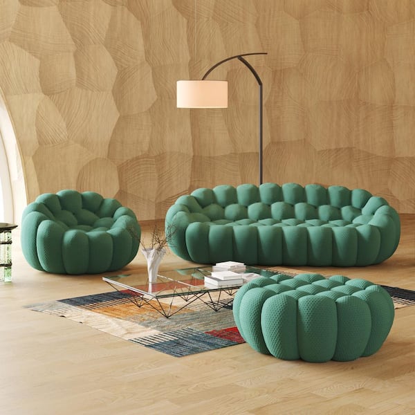 98.43 in. W Flared Arm 3D knitted Polyester 3-piece Curved Modular Free Combination Sectional Sofa in Green with Ottoman