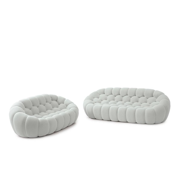 98 in. W Flared Arm 3D-Knitted Polyester 2-Piece Curved Modular Sectional Sofa in Beige