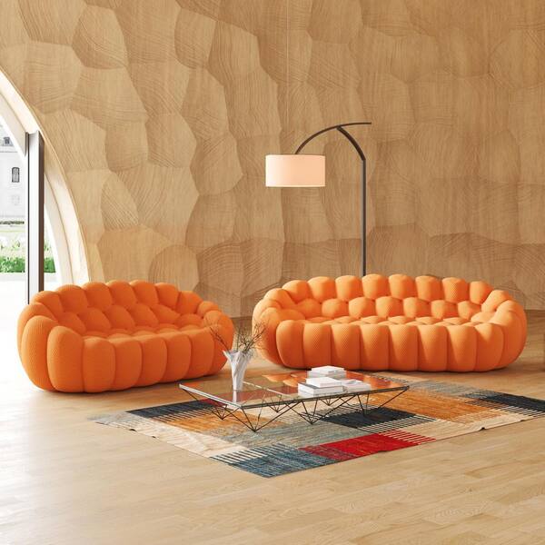 98 in. W Flared Arm 3D-knitted Polyester 2-Piece Curved Modular Sectional Sofa in Orange