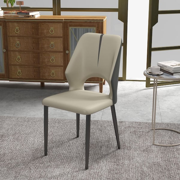 Beige Modern Minimalist PU Leather Parsons Dining Chair with Metal Legs (Set of 6)