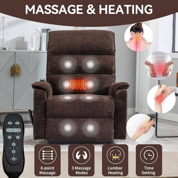 Brown Chenille Polyester Massage Chair Recliner with Electric Power Lift, 8-Point Vibration Massage and Lumbar Heating