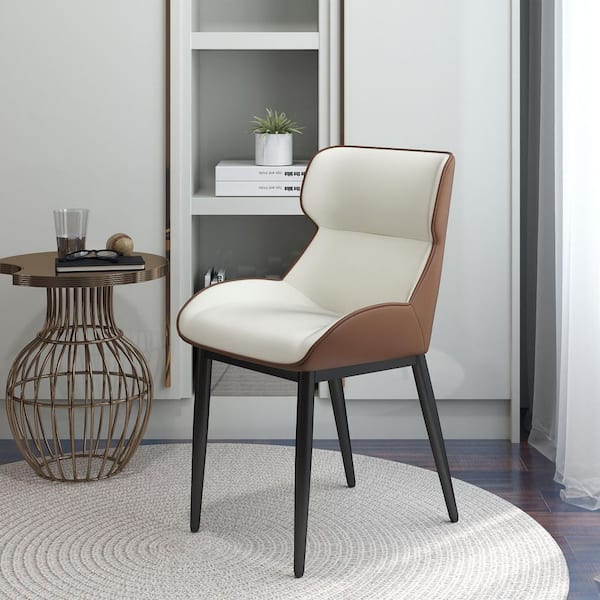 Minimalist Brown PU Leather Parsons Dining Chair Set of 2