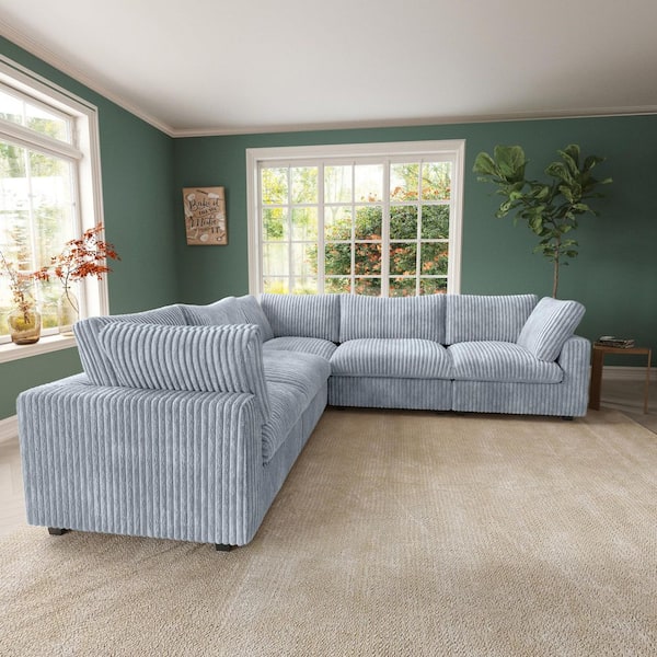 Oversized 118.1 in. W Square Arm 5-Piece Rabbit Velvet Plush Modular Sectional Sofa with Slipcover in Gray 5-Seater