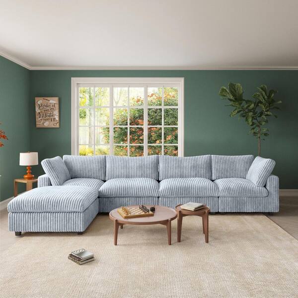 Oversized 157.48 in. W Square Arm 5-piece Rabbit Velvet Plush Modular Sectional Sofa in Gray 5-Seater with Ottoman