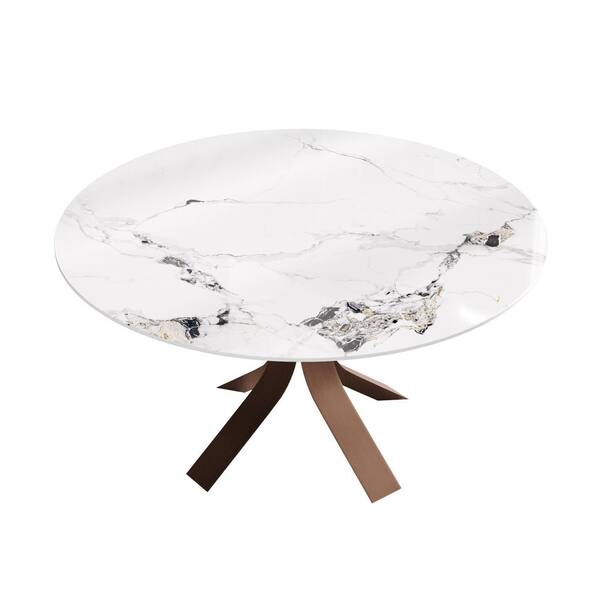 Pandora White Glossy Sintered Stone Top 59.05 in. Pedestal Round Dining Table with Carbon Steel Leg Seats 8