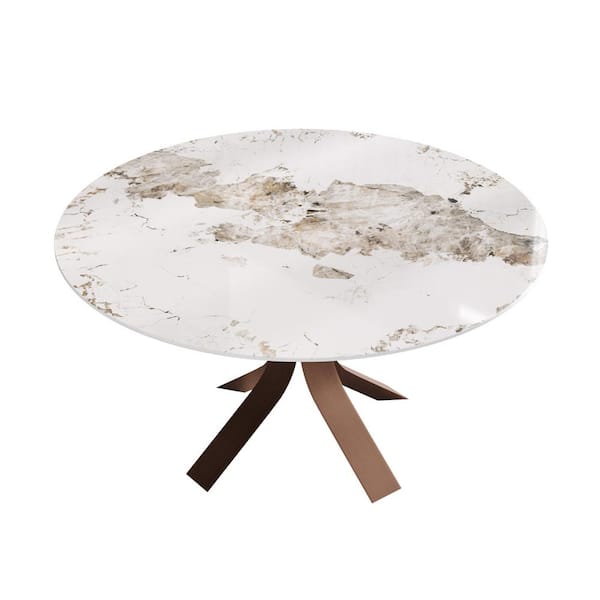 Pandora White Glossy Sintered Stone Top 59.05in. Pedestal Base Round Dining Table with Carbon Steel Leg Seats 8