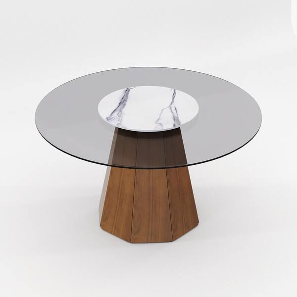 Round Brown With Lazy Turntable Glass 59.05 in. Pedestal Dining Table with Wood Base Seats 8