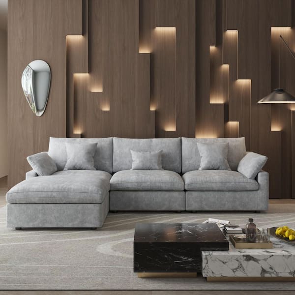 Sectional Sofa 4-Piece Linen L-Shaped Modular Free Combination Living Room Set Gray with Removeble Covers