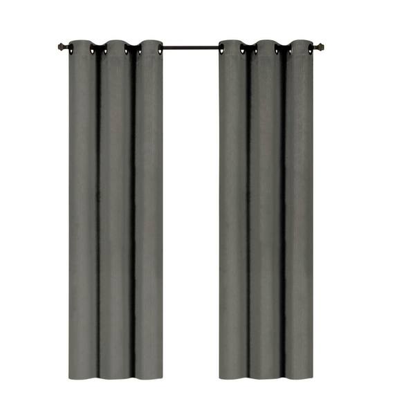 Embossed Gray Polyester Thermal 38 in. W x 63 in. L Grommet Blackout Curtain Panel (Set of 2)