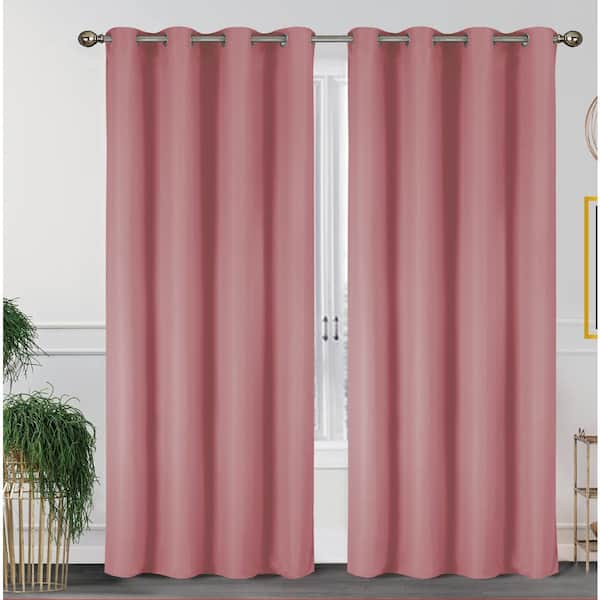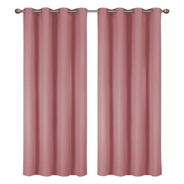 Lillian Collection Pink Polyester Solid 55 in. W x 84 in. L Thermal Grommet Indoor Blackout Curtains (Set of 2)