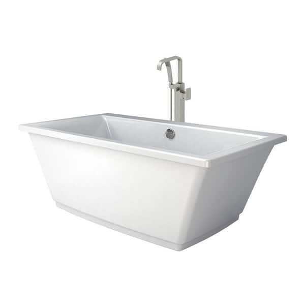 FIA 62 in. x 32 in. Soaking Bathtub with Center Drain in White with Square Tub Filler in Brushed Nickel