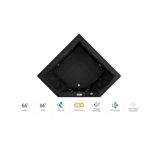 FUZION SALON SPA 65.75 in. x 65.75 in. Rectangular Combination Bathtub with Center Drain in Black