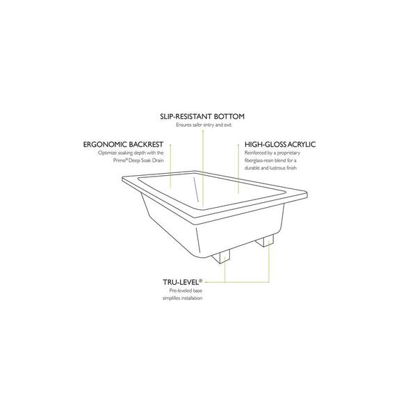 Primo 60 in. x 36 in. Rectangular Soaking Bathtub with Reversible Drain in Oyster