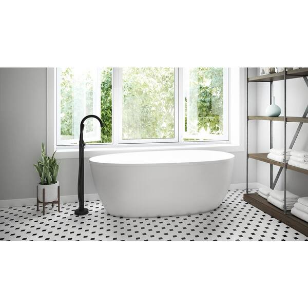 Stretto 67 in. x 32 in. Soaking Bathtub with Universal Drain in White with Round Tub Filler in Matte Black