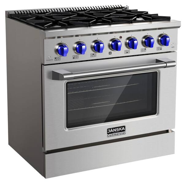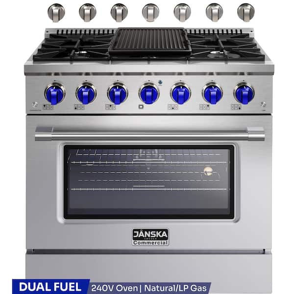36 in. 5.2 cu. ft. Freestanding Dual Fuel Range with 6 Burners, Convection Oven, and Griddle in Stainless Steel