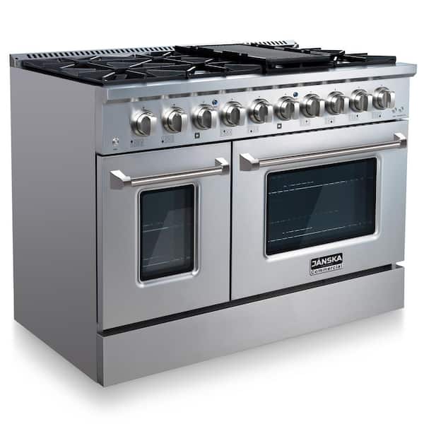48 in. 6.7 Cu. Ft. Professional Freestanding Dual Fuel Range with 8 Burners, Griddle and Double Oven in Stainless Steel