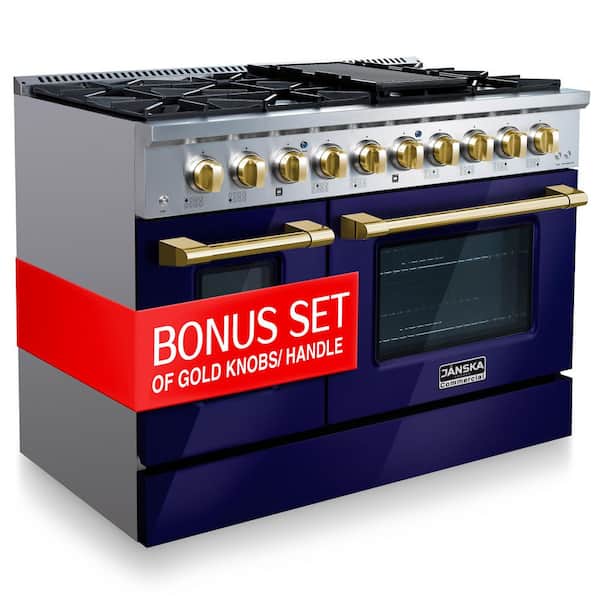 Professional Series 48 in. 6.7 cu. ft. 8-Burners Double Oven Gas Range with Griddle in Lustrous Blue