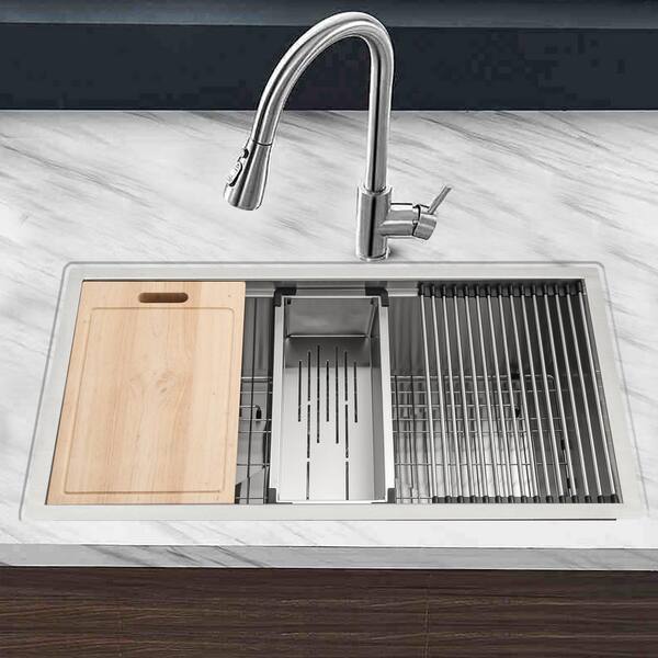 32 in. Undermount Single Bowl 18-Gauge Stainless Steel Kitchen Sink with Workstation Accessory Kit