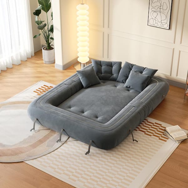 68.2 in. W Technological Velvet Convertible Twin Sleeper Size Sofa Bed in Gray-68.2 in