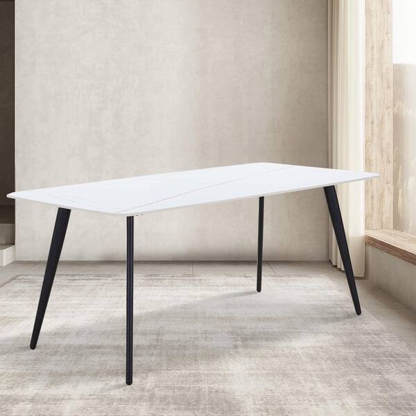 70 in Rectangle White Faux Marble Dining Table with Metal legs(Seats 8)