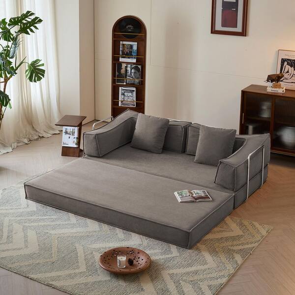 78.7 in. W Square Arm Corduroy Fabric Rectangle Convertible Sofa in Gary