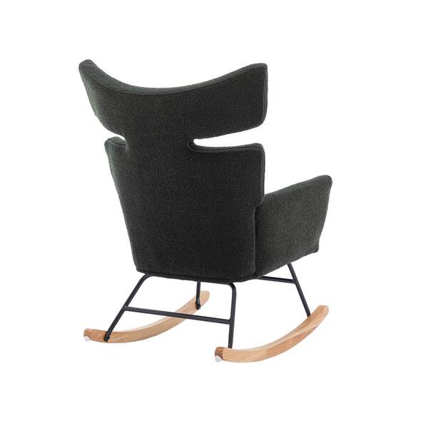 Black Fabric Upholstered Fish Tail Shape Rocking Chair with Wood Leg Set of 1