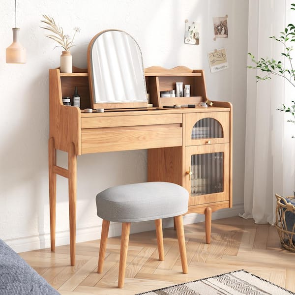 Clear Wood 3-Drawers 40.6 in. Ash Solid Wood Dresser with Side Cabinet