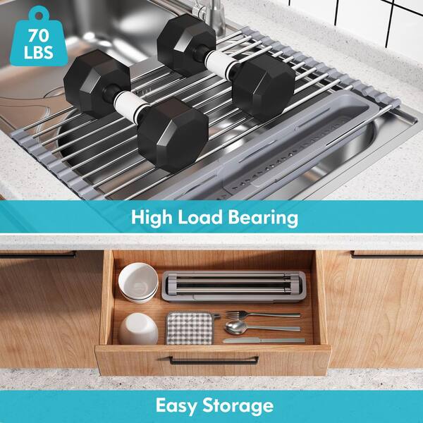 Expandable 304 Stainless Steel Roll Up Dish Drying Dish Rack