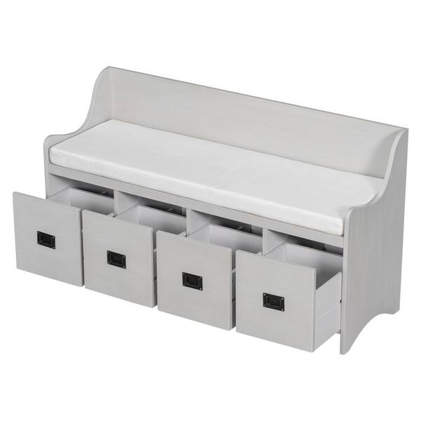 Gray Storage Bench with Movable Cushion Entryway Bench with Drawers and Backrest