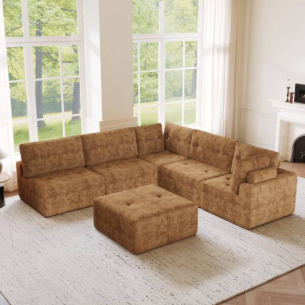 Modern 106.3 in. W Square Arm Corduroy Velvet Convertible Multi-Combination Rectangle Sofa in Brown