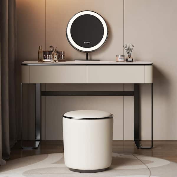 White 2-Drawers 39.37 in. Dresser with Mirror and Chair