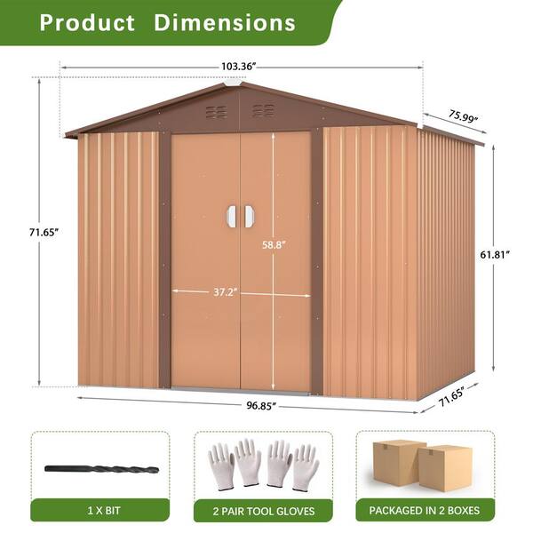 8.4 ft. W x 6.3 ft. D Outdoor Metal Storage Shed Garden Tool Galvanized Steel Shed with Sliding Door (52.92 sq. ft.)