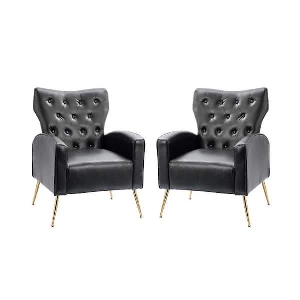 Actaeon Black Accent Armchair with Metal Legs (Set of 2)