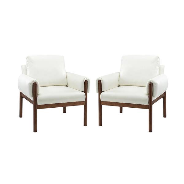 Adele White Armchair with Solid Wood Legs (Set of 2)