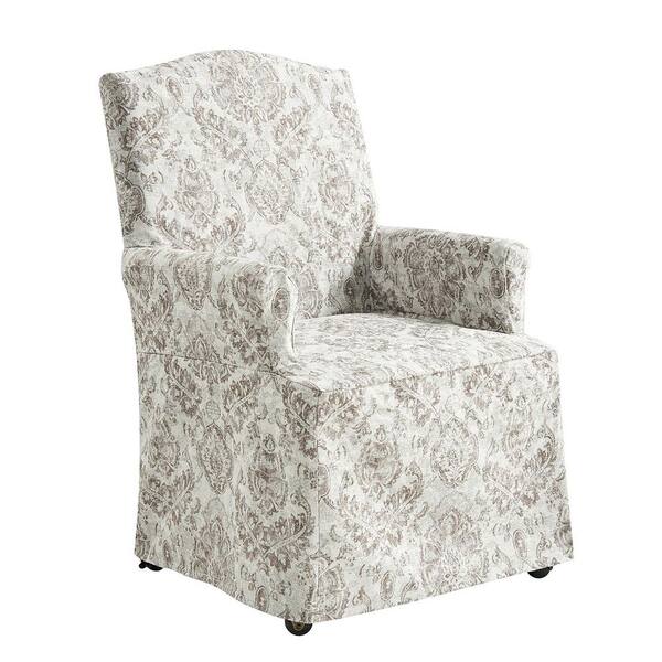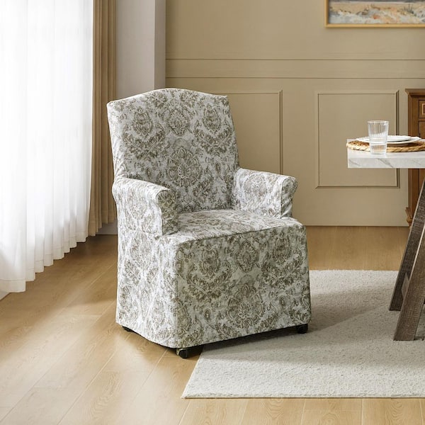 Adelina Beige Traditional Roll Arm Dining Chair with Hooded Caster Wheels
