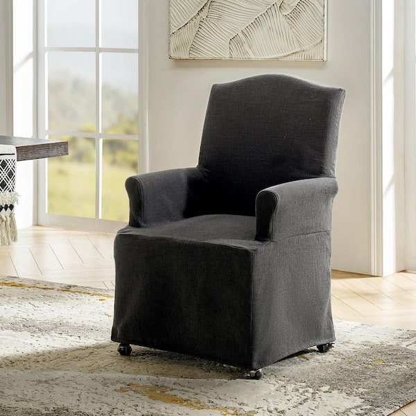 Adelina Charcoal Traditional Roll Arm Dining Chair with Hooded Caster Wheels Set of 4