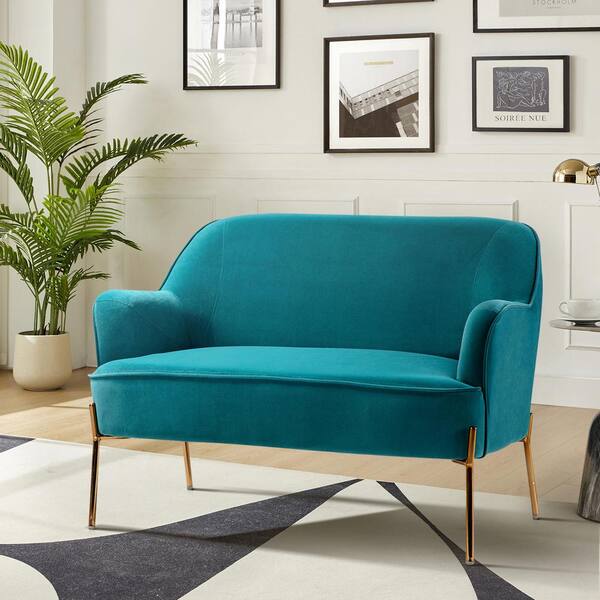 Agacia 43 in. Blue Polyester Recessed Arms Loveseat Sofa with Piped Edges Design