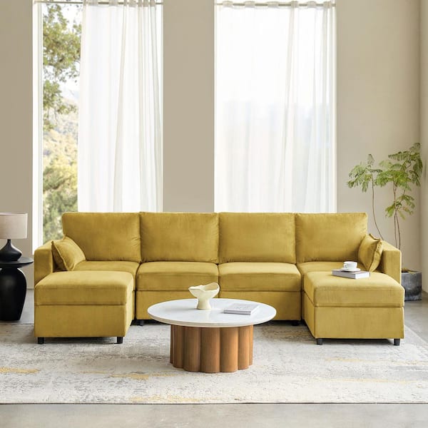 Albert Modern 123.03 in. W Upholstered 6-Piece Polyester Sectional Sofa in. Mustard with Storage