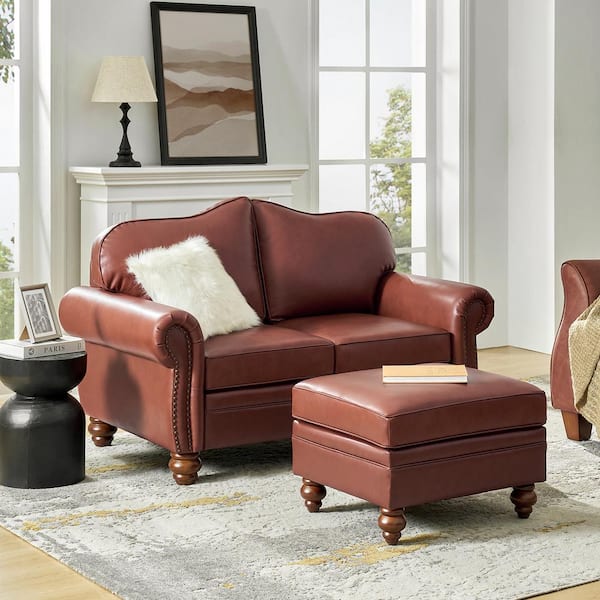 Alex Brown 60 in. Transitional Leather 2-Piece Living Room Sofa and Ottoman Set