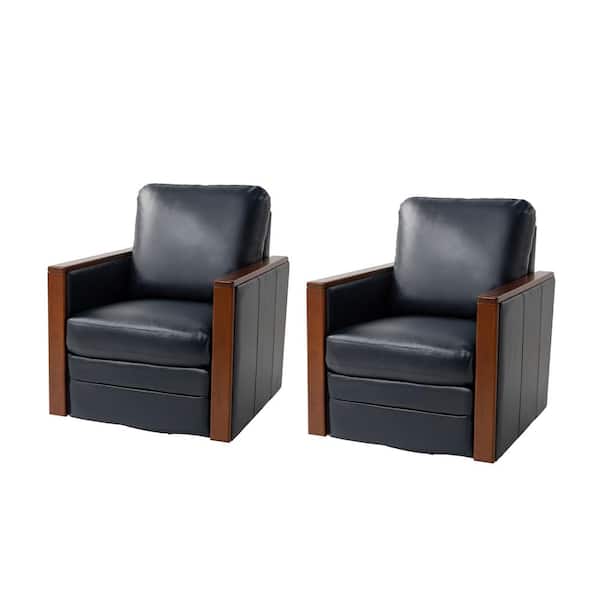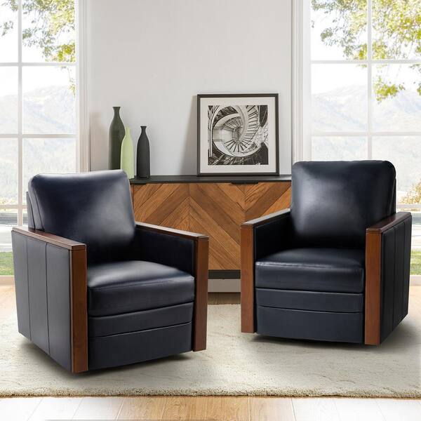 Alex Modern Leather Swivel Armchair with Wood Arms Set of 2-NAVY