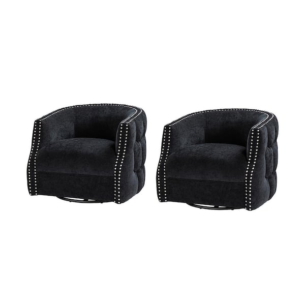 Alina Black Ergonomic Design 360 ° Swivel Chair (Set of 2) with Decoratvie Nailhead Tirms