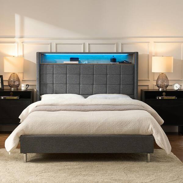 Amalia Dark Grey Modern 61.5 in. LED Light Bed with Storage Space-Queen