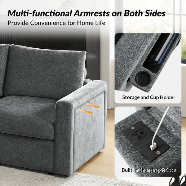 Andrea 98.25 in. Straight Arm Polyester Rectangle Storage Sofa in Gray