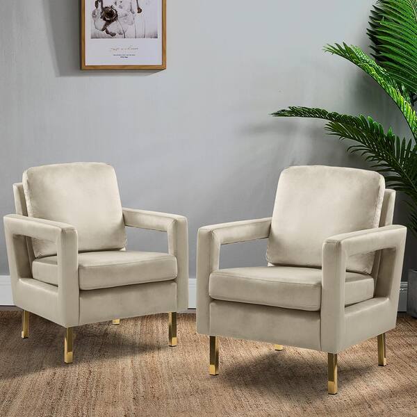 Anika Tan Velvet Arm Chair with Removable Cushions (Set of 2)